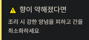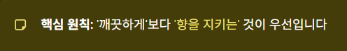 - ❌ 물 세척 금지: 향 성분 손실의 가장 큰 원인입니다.