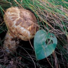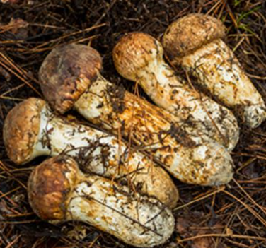 송이버섯의 밑둥은 채취 시 잘린 자국이 남아있습니다.
